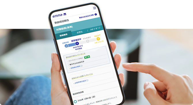 事故対応の進捗状況や解決時期の目安が、お客さま専用ページから24時間365日ご確認いただけます。お客さまから見えにくい示談交渉のステータスなどもわかって安心。